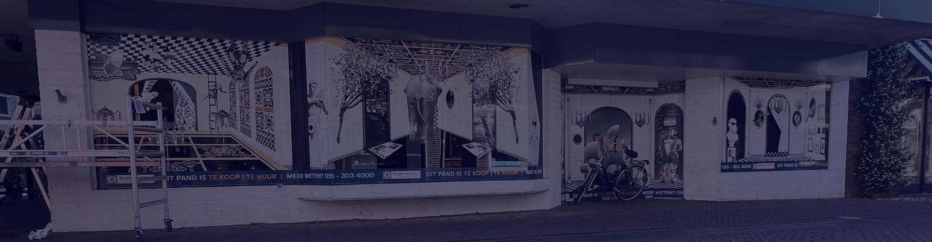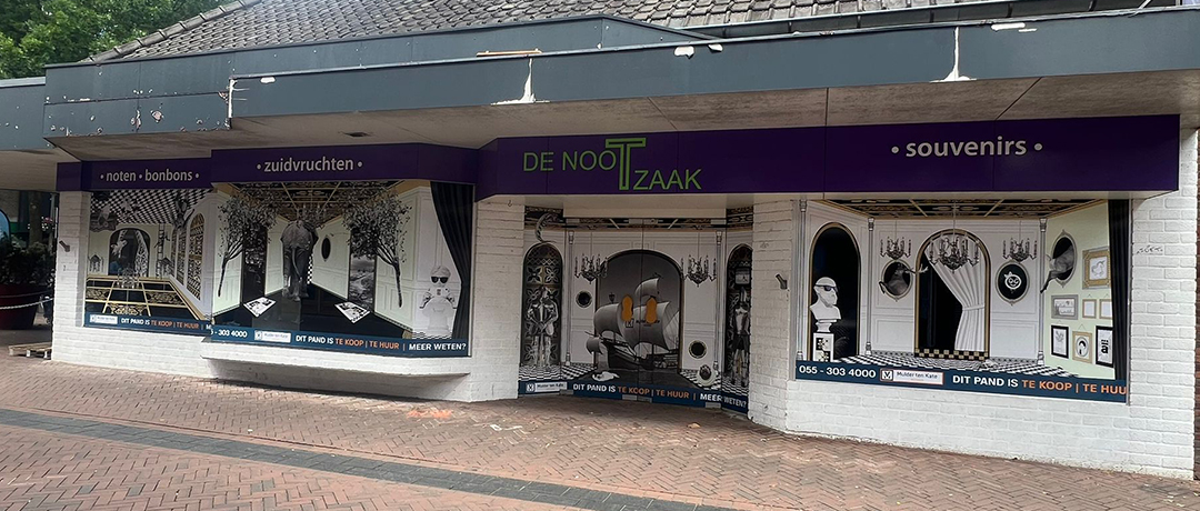 Voor Apeldoorn Binnenstad hebben wij een prachtige klus mogen verzorgen. Het voormalige pand van Nootzaak hebben wij voorzien van stickervinyl. Het ontwerp is gemaakt door Monika Kimenai van Studio Kimenai. In het ontwerp zitten doorkijkjes zodat voorbijgangers een blik naar binnen kunnen werpen.